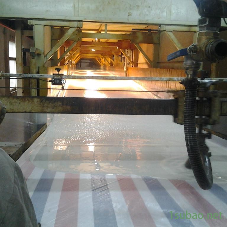 本机将海绵原料由贮料罐恒温后,由计量系统按比例输送到混合器高速搅拌,布料机构将原料均匀浇到纸模上,然后送到熟化箱聚合反应定型,经切断机按需要切成一定长度的块料**由输送带输送出成品海绵,即完成海绵生产流程。