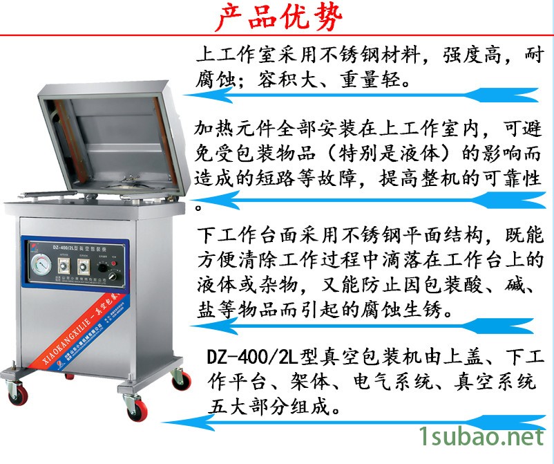 本公司供应小康牌DZ-400/2L小康牌 DZ-400/2L 400mm 2-3次/分钟 真空封口机 山东潍坊诸城密州东路7777号山东小康机械有限公司,质量保证,欢迎咨询洽谈。