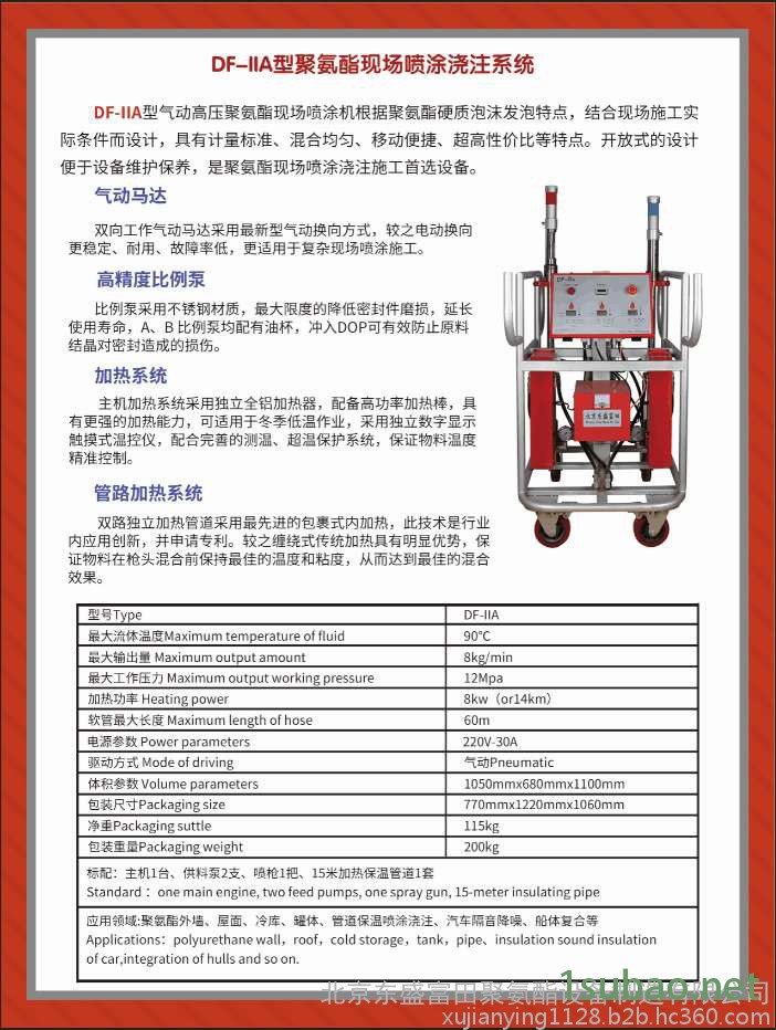 DF-llA气动高压聚氨酯现场喷涂机根据聚氨酯硬泡特点,结合现场实际施工条件而设计,具有计量标准、混合均匀、移动便捷、超高性价比等特点。开放式设计便于设备维护保养,是聚氨酯现场喷涂施工的可选设备。